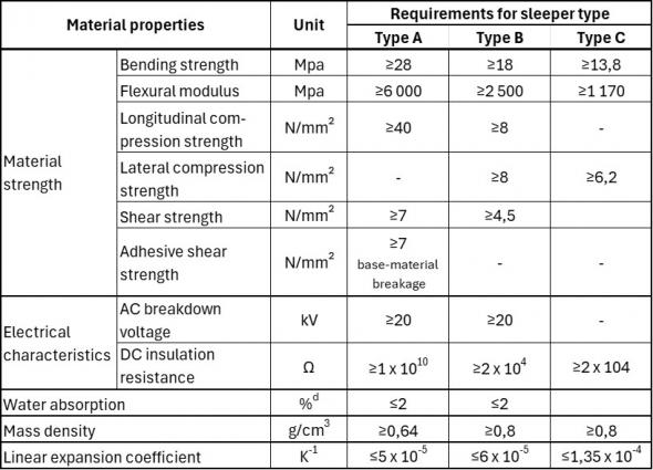 För att minimera dessa risker har järnvägsföretag och expertkommittéer världen över utvecklat sofistikerade testkataloger. Dessa kulminerade bland annat i ISO 12856-1-standarden år 2014. Bilaga B definierar gräns- och målvärden, testmetoder och verifieringar, särskilt för tryckhållfasthet, värmeutvidgning och långvarig väderpåverkan (se utdrag i tabellen).